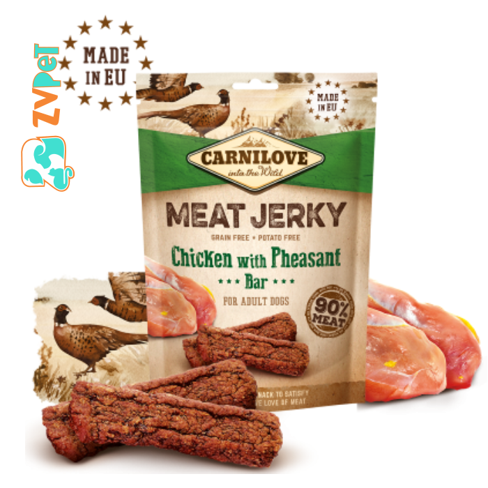 Proporcione ao seu cão um petisco delicioso e nutritivo com o Carnilove Jerky Frango e Faisão. A maneira perfeita de cuidar e recompensar o seu pet com ingredientes naturais e saudáveis.