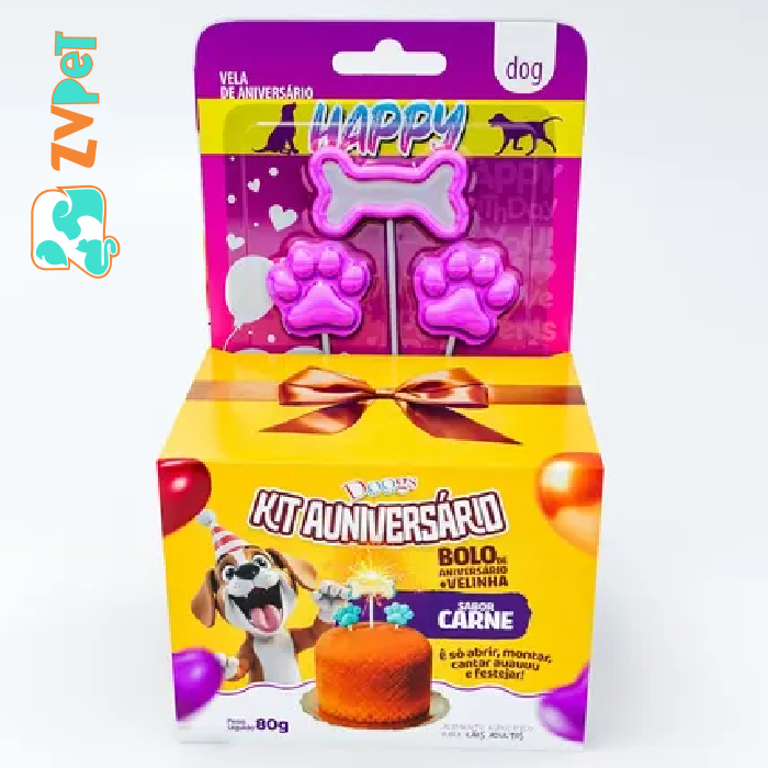 Bolo De Aniversario Doogs Com Velas Rosa Para Caes Sabor Carne 80 G