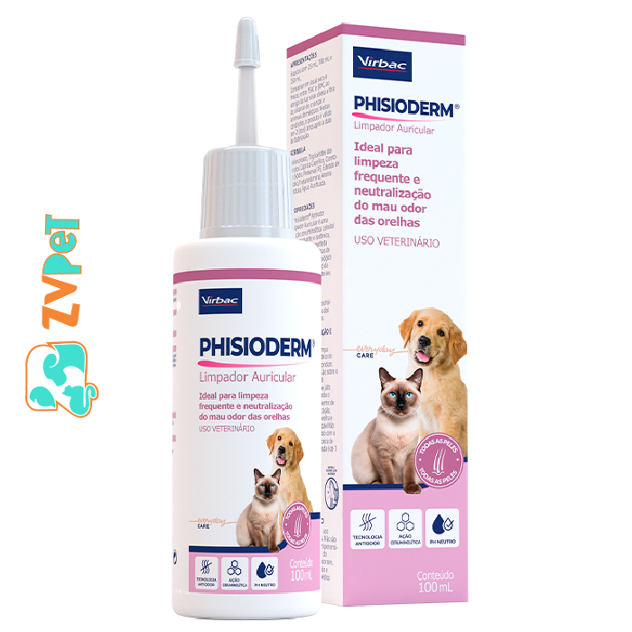 Limpador Auricular Virbac Phisioderm Para CÃes E Gatos 100 Ml