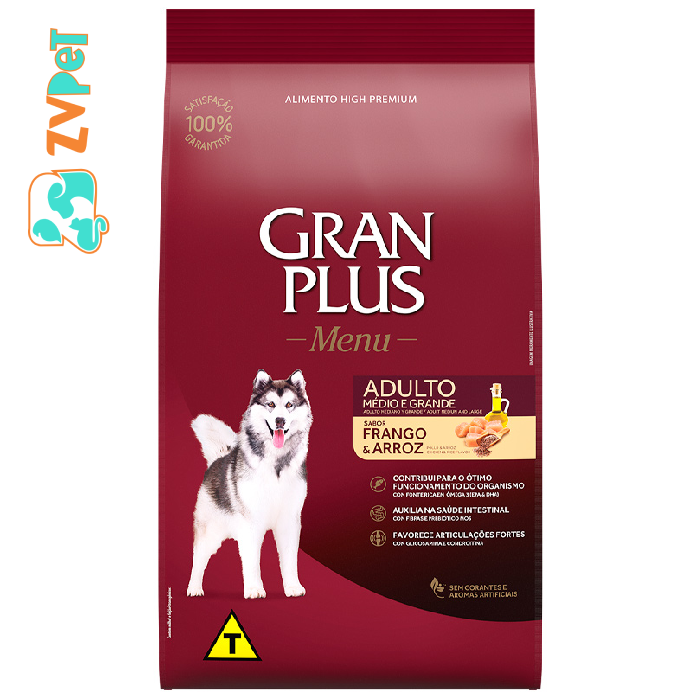 Racao Granplus Menu Para Caes Adultos De Porte Medio E Grande Sabor Frango E Arroz 15kg
