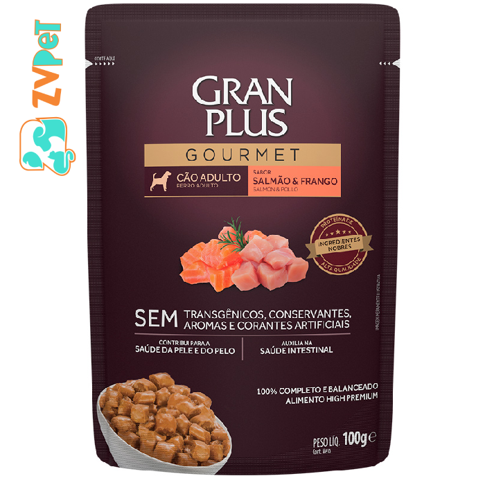 Racao Umida Granplus Gourmet Sache Para Caes Adultos Sabor Salmao E Frango - 100g