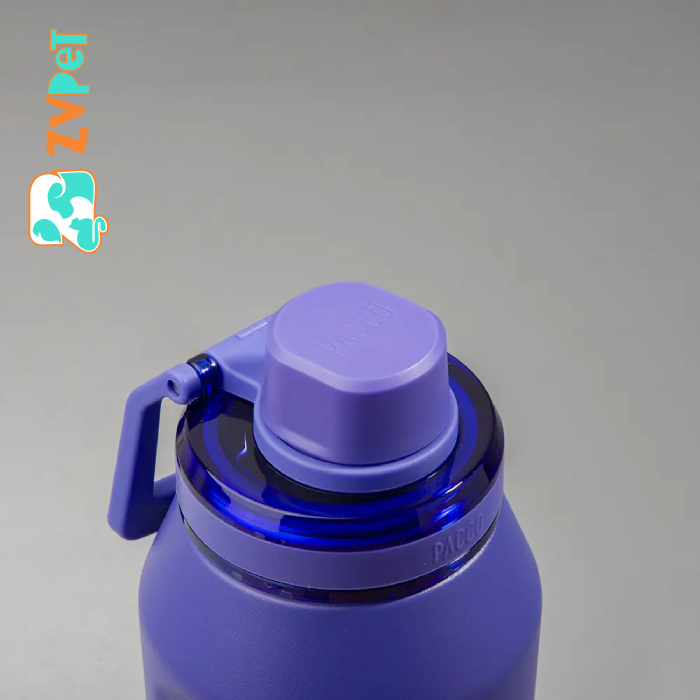 A alça flexível presente da tampa da garrafa, facilita o transporte e permite que a garrafa se movimente de maneira confortável, prática e segura.